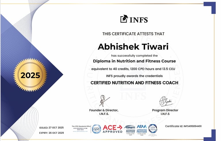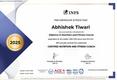 🎓 INFS Certified Coach – Diploma holder in Exercise Science & Nutrition.